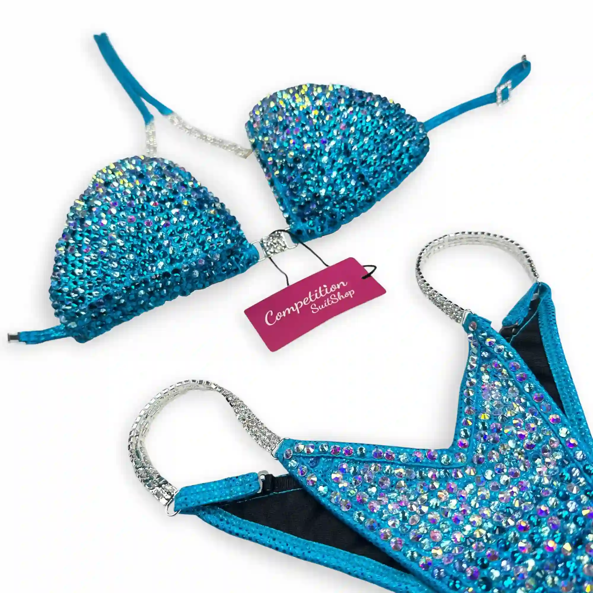 Command the spotlight in the Blue Gradient Bikini Competition Suit (BM173-1) — a standout in our elite bikini competition suits collection. Designed to meet NPC, IFBB, OCB, WBFF, and many other federations, this handcrafted suit blends striking design with a performance-ready fit and unmatched comfort.