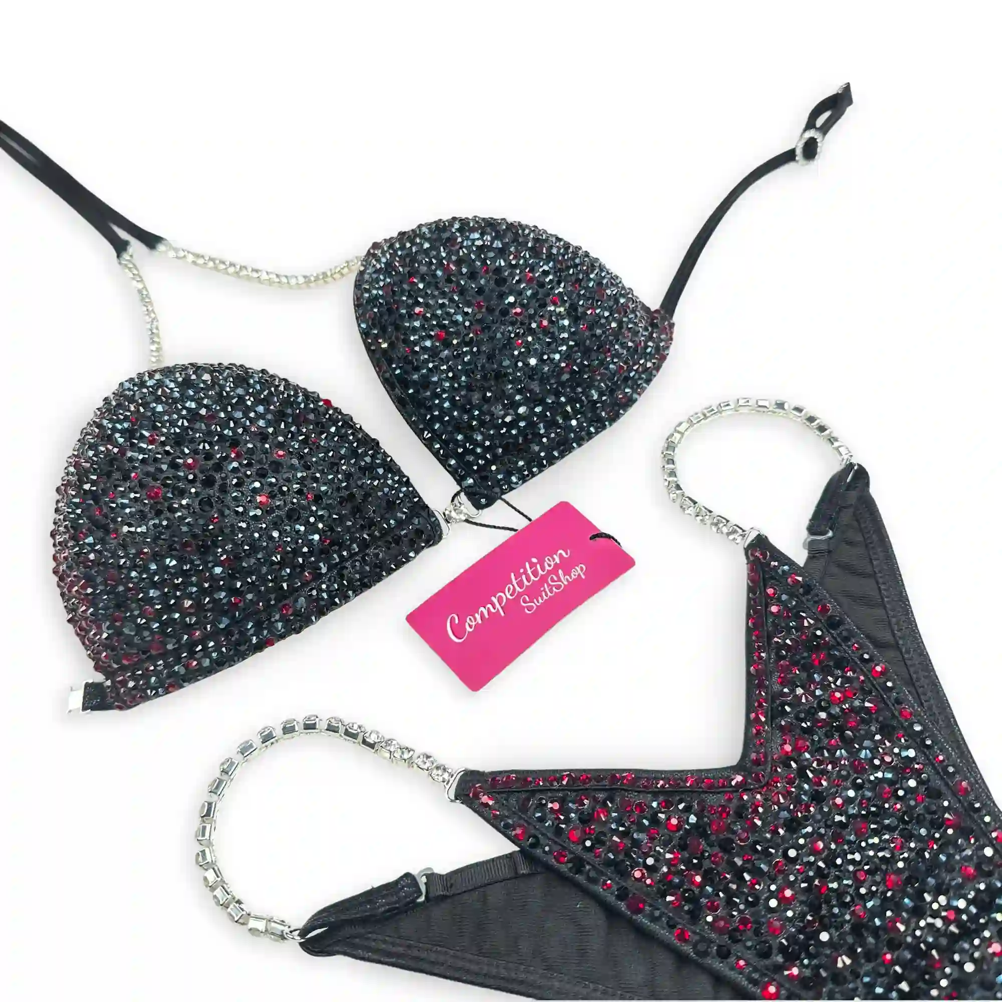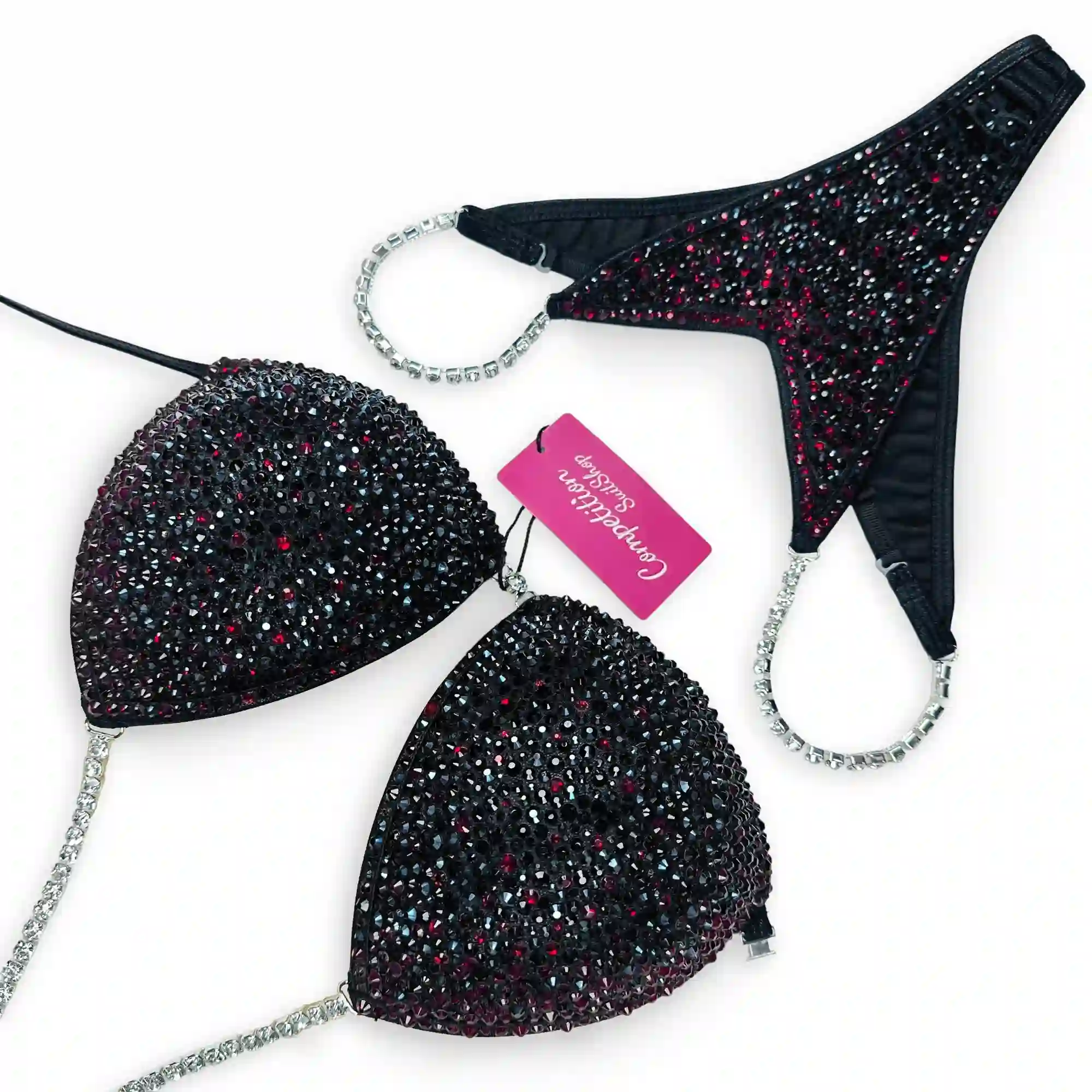 Command the spotlight in the Crimson Black Wellness Competition Suit (B227W) — a standout in our elite bikini competition suits collection. Designed to meet NPC, IFBB, OCB, WBFF, and many other federations, this handcrafted suit blends striking design with a performance-ready fit and unmatched comfort.