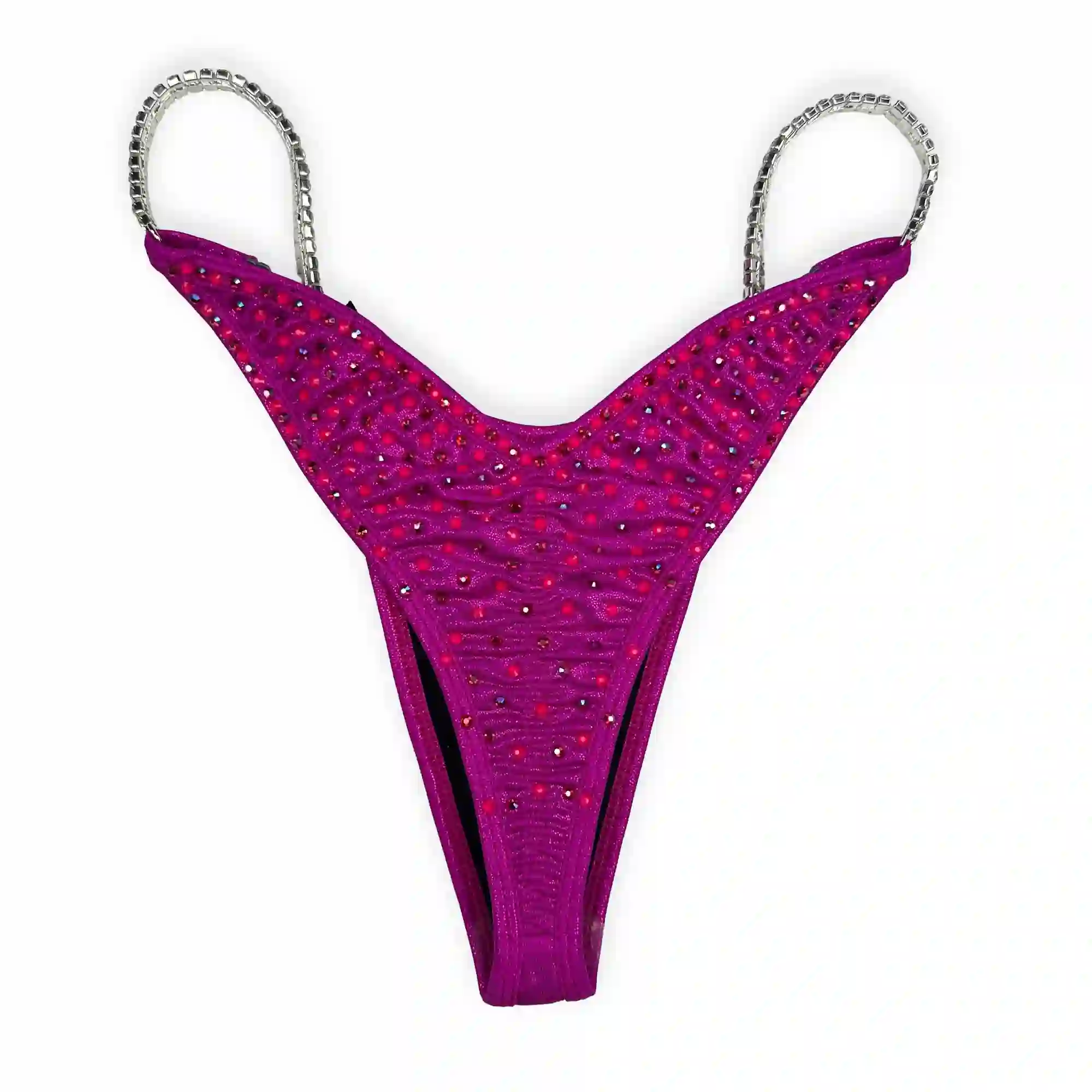 Command the spotlight in the Sparkling Neon Pink Bikini Competition Suit (B158) — a standout in our elite bikini competition suits collection. Designed to meet NPC, IFBB, OCB, WBFF, and many other federations, this handcrafted suit blends striking design with a performance-ready fit and unmatched comfort.
