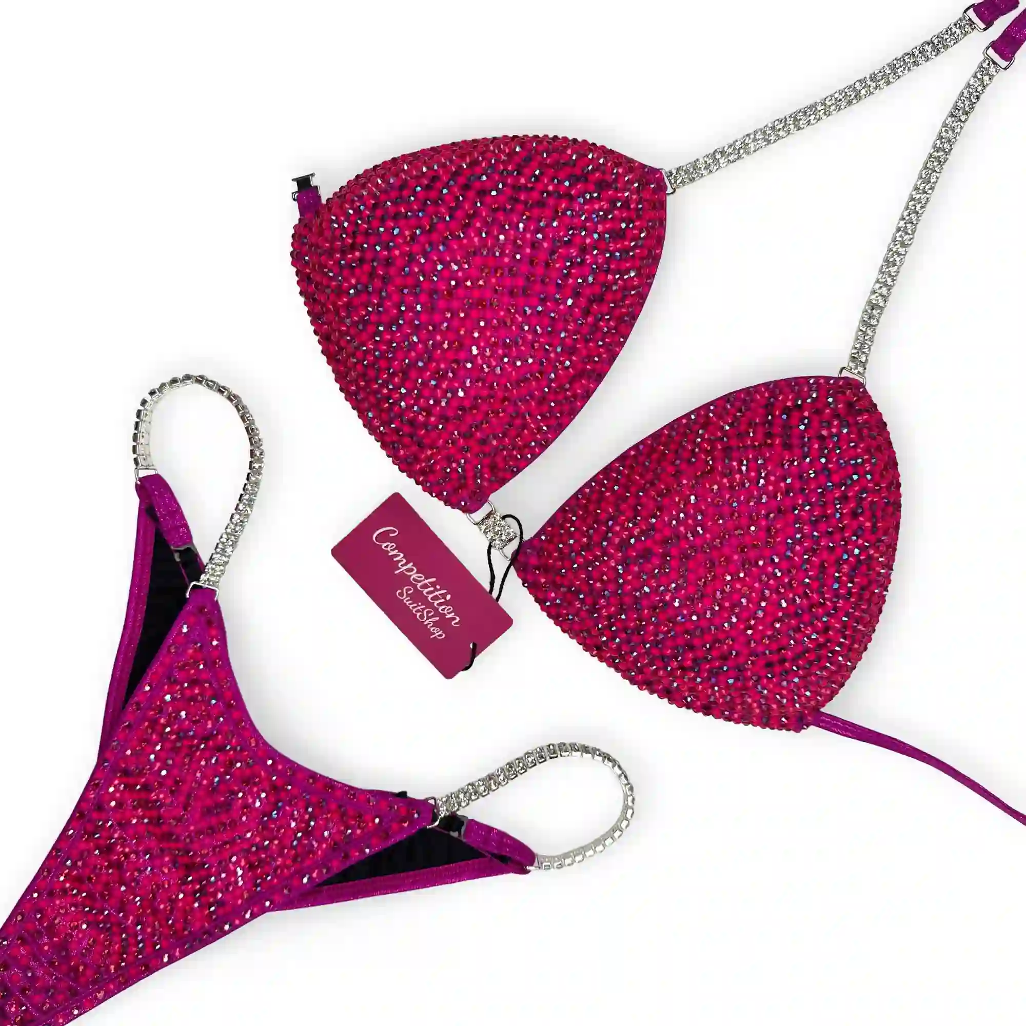 Sparkling Neon Pink Bikini Competition Suit (B158)