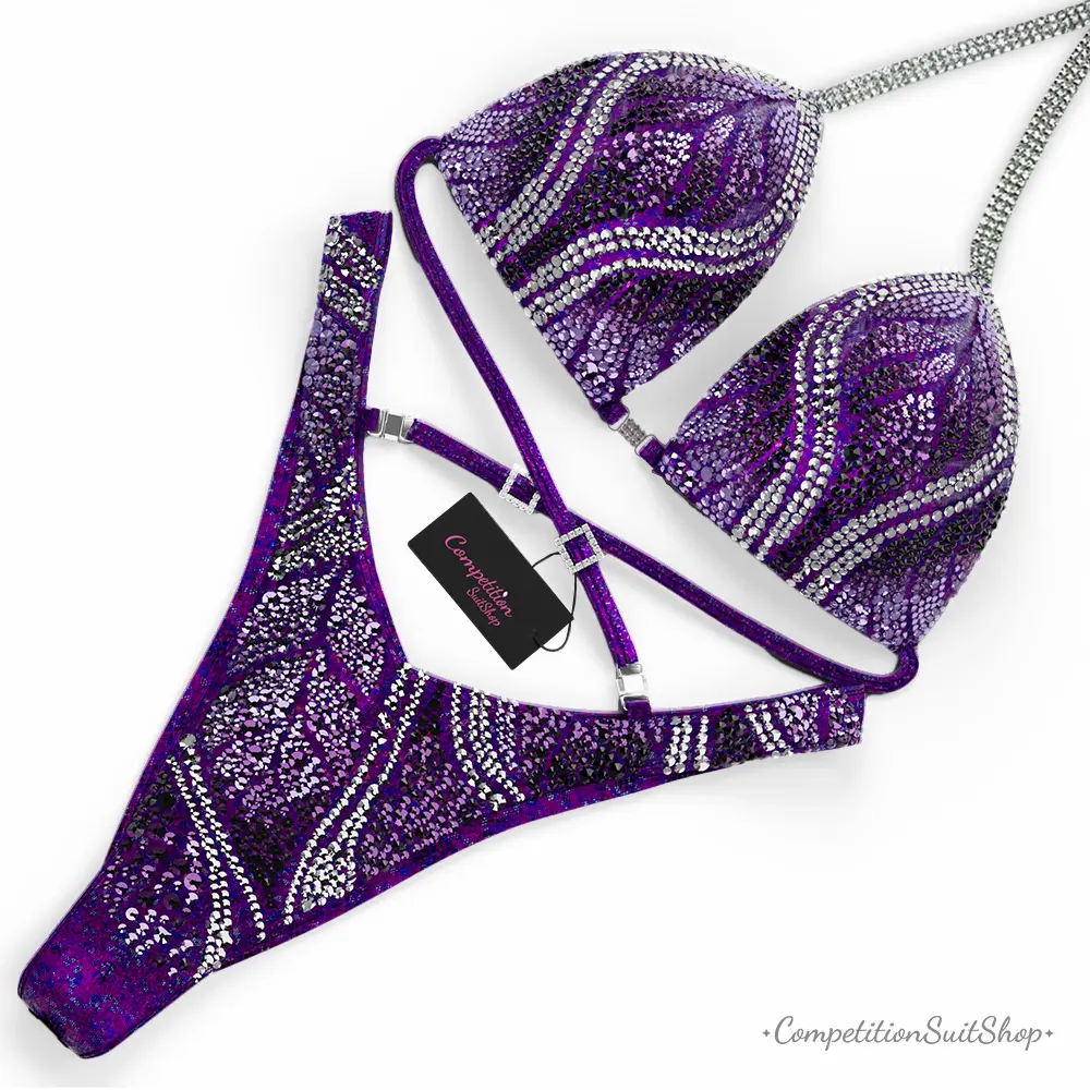 Own the stage with confidence in our Amethyst Phoenix Figure Competition Suit (FM1038-2)— a show-stopping piece from our premium figure competition suit collection. Expertly handcrafted to meet the standards of NPC, IFBB, OCB, and WBFF and many other federations, this suit is designed for competitors who demand both performance and elegance in every detail.