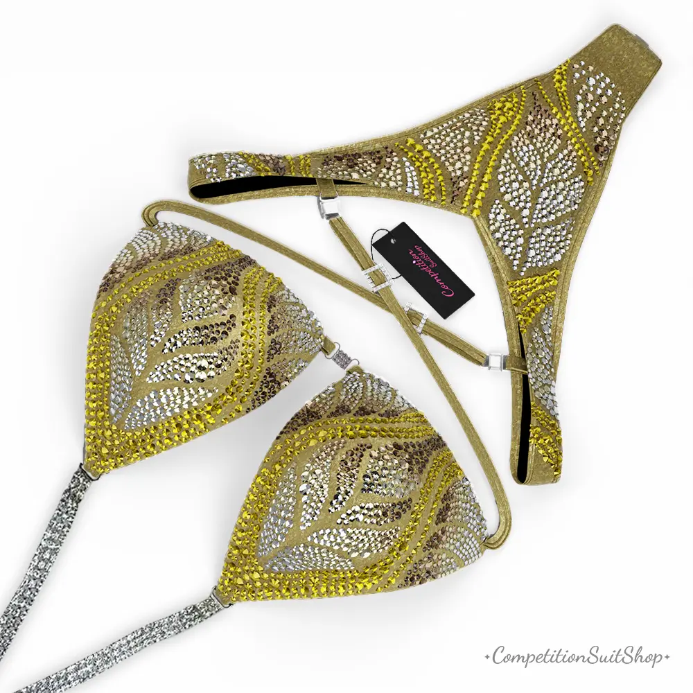 Own the stage with confidence in our Gold Phoenix Figure Competition Suit (FM1038-6)— a show-stopping piece from our premium figure competition suit collection. Expertly handcrafted to meet the standards of NPC, IFBB, OCB, and WBFF and many other federations, this suit is designed for competitors who demand both performance and elegance in every detail.