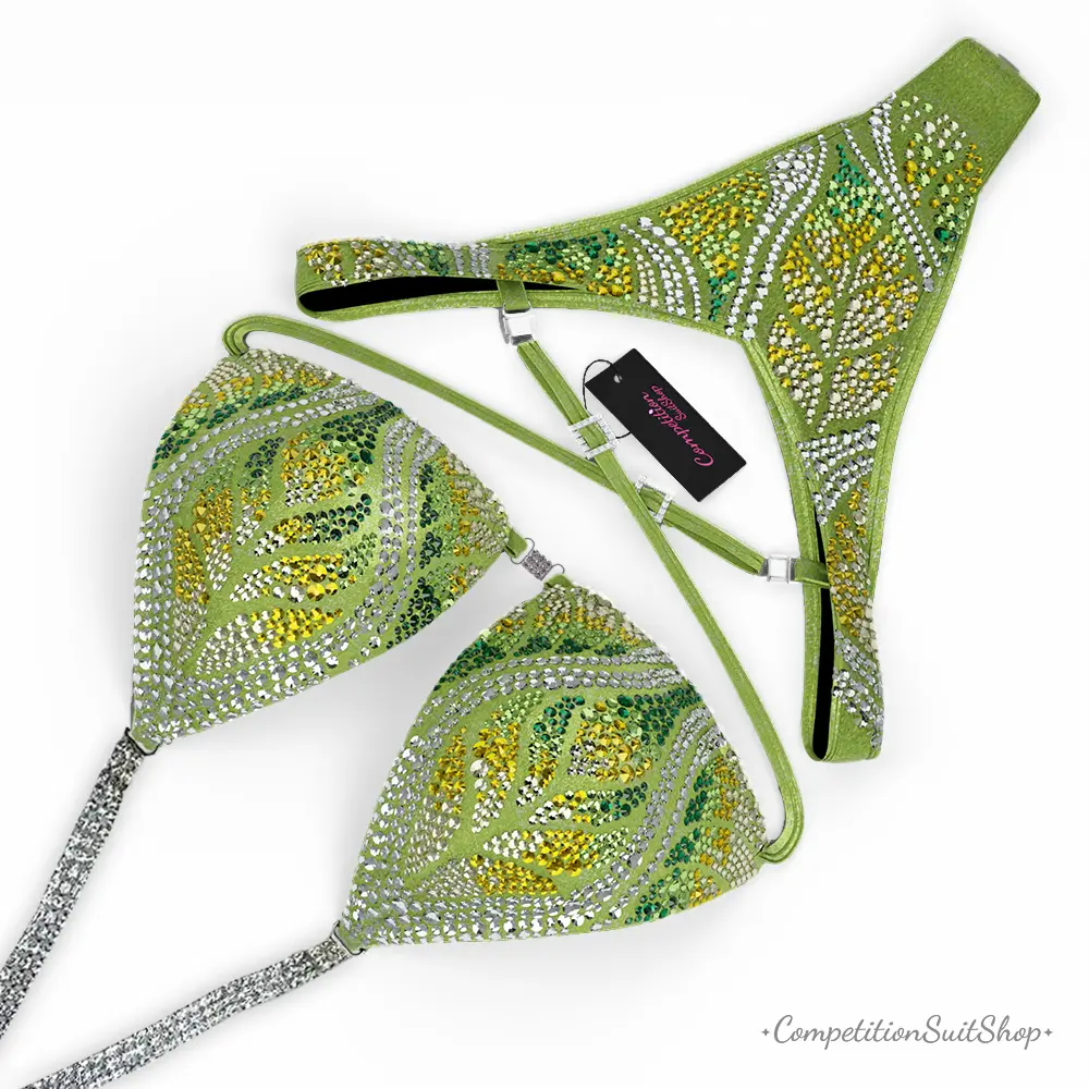 Own the stage with confidence in our Lime Phoenix Figure Competition Suit (FM1038-7)— a show-stopping piece from our premium figure competition suit collection. Expertly handcrafted to meet the standards of NPC, IFBB, OCB, and WBFF and many other federations, this suit is designed for competitors who demand both performance and elegance in every detail.