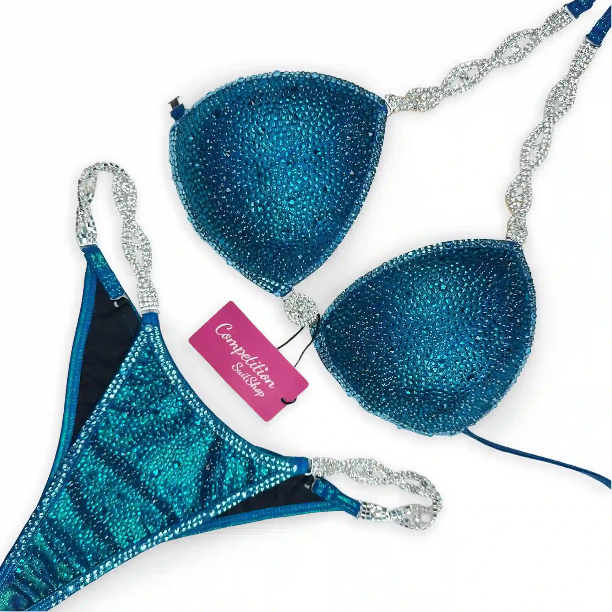 Can be made for bikini competition, figure competition, and physique competition, categories. This radiant suit enhances your physique and complements your hair color, tan shade, and stage skin tone to help you shine with confidence.