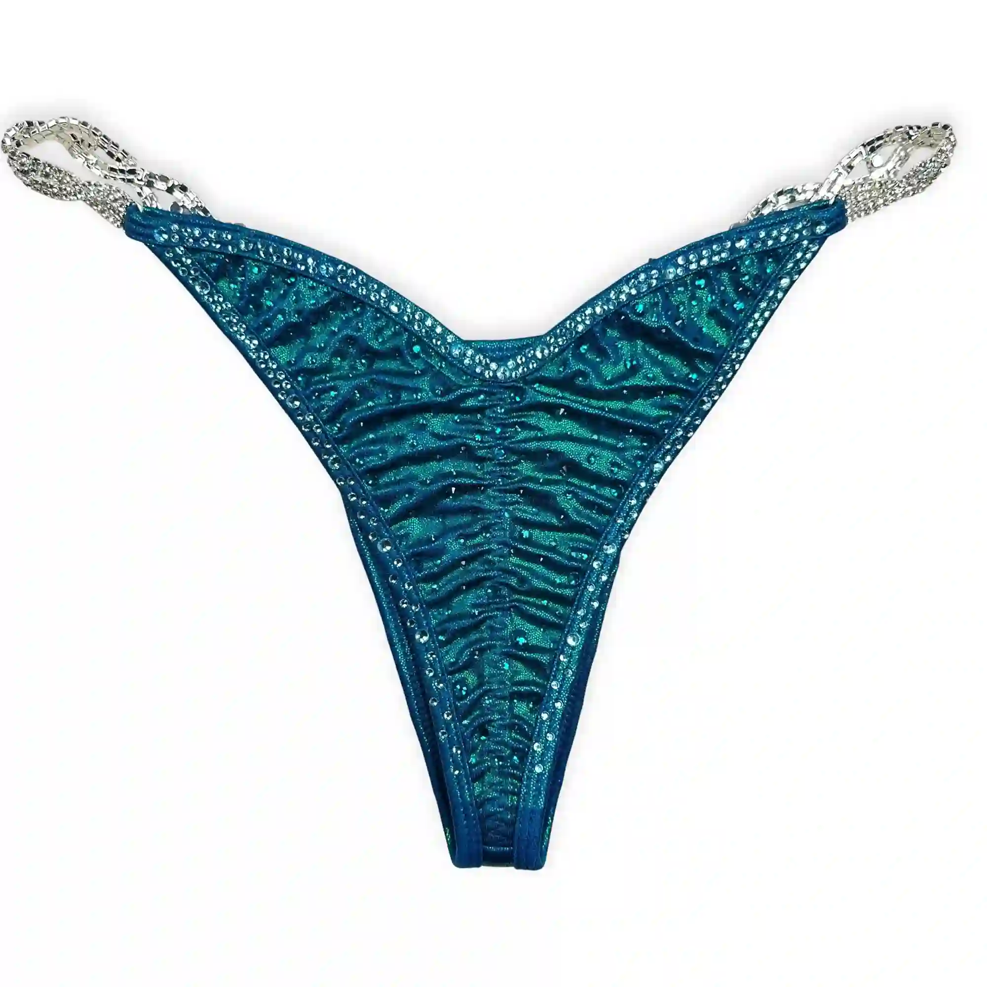 Command the spotlight in the Midnight Teal Trim Wellness Competition Suit (BM216-7W) — a standout in our elite bikini competition suits collection. Designed to meet NPC, IFBB, OCB, WBFF, and many other federations, this handcrafted suit blends striking design with a performance-ready fit and unmatched comfort.
