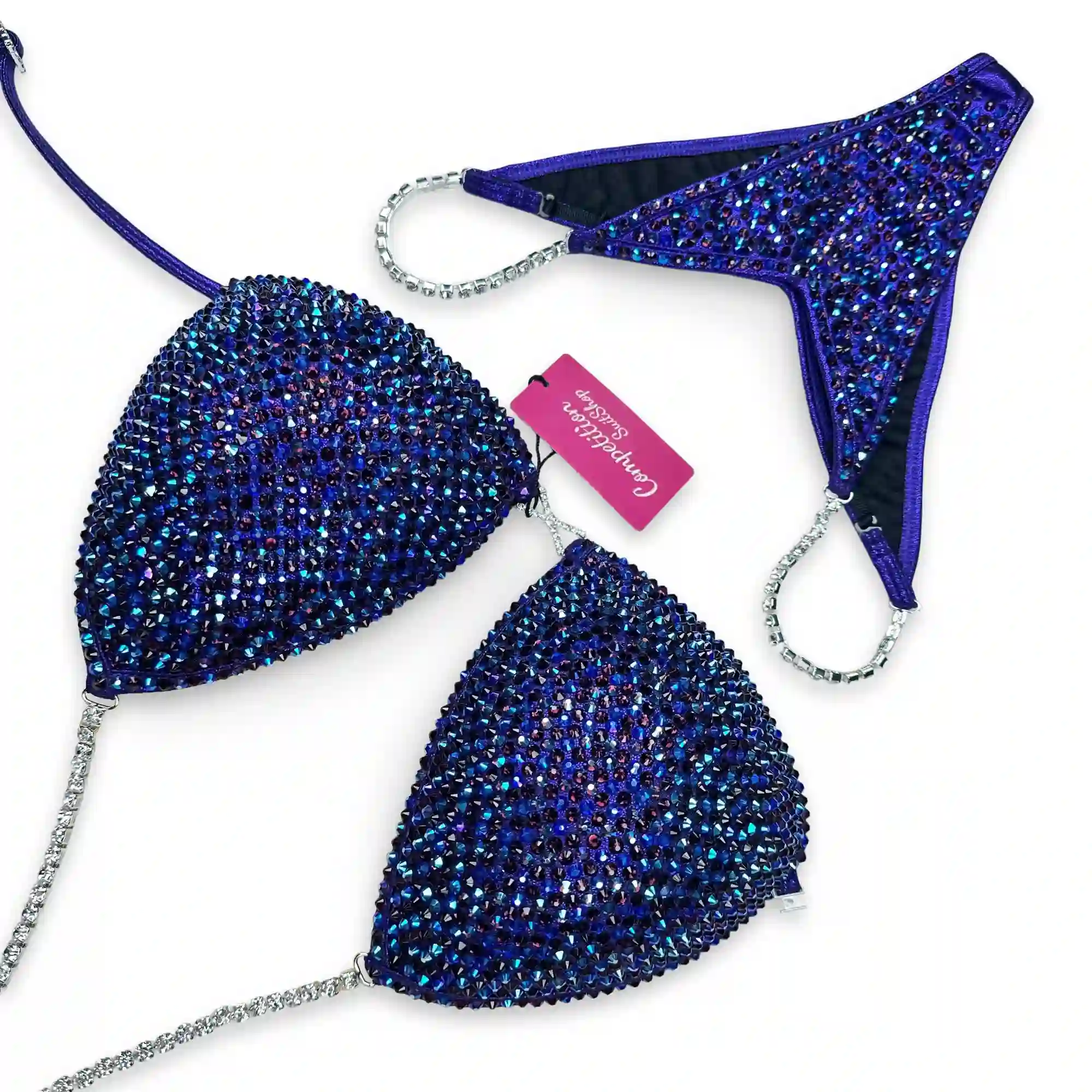 Command the spotlight in the Purple Blue Luxe Wellness Competition Suit (BM151-45W) — a standout in our elite bikini competition suits collection. Designed to meet NPC, IFBB, OCB, WBFF, and many other federations, this handcrafted suit blends striking design with a performance-ready fit and unmatched comfort.